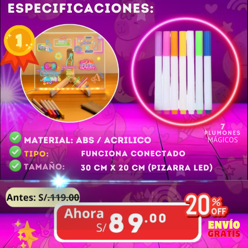 Convierte Cada Mensaje en Magia con la Pizarra LED Acrílica 30x20 cm